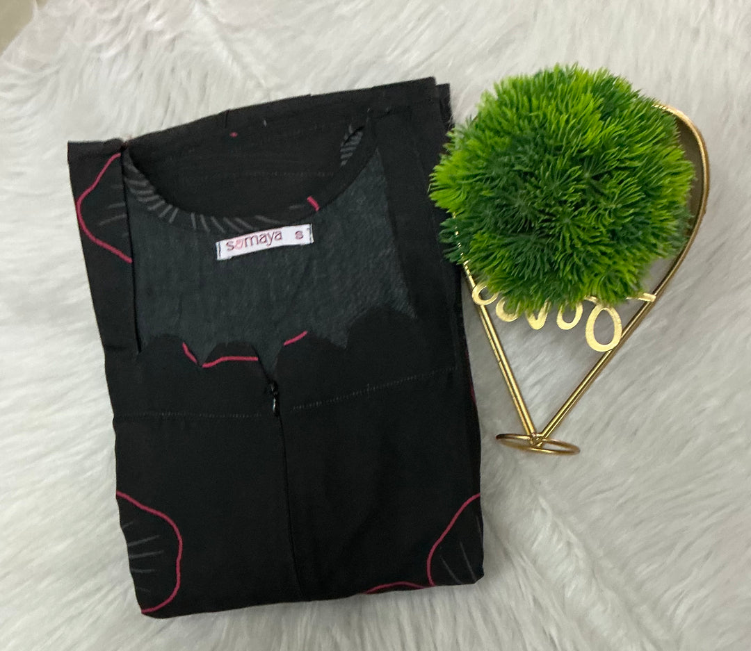 Black flower cotton Co-ord set (button opening)