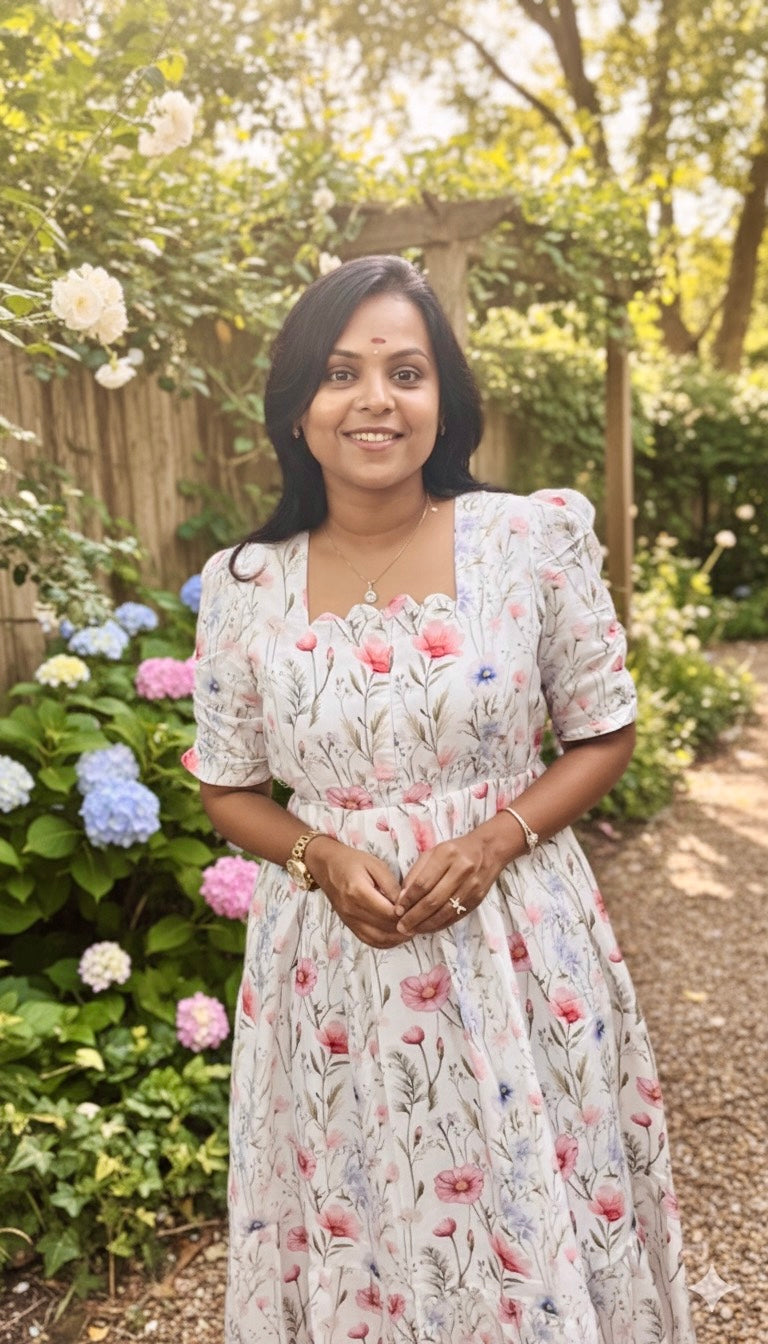 Roh white bloom Dress With Lining