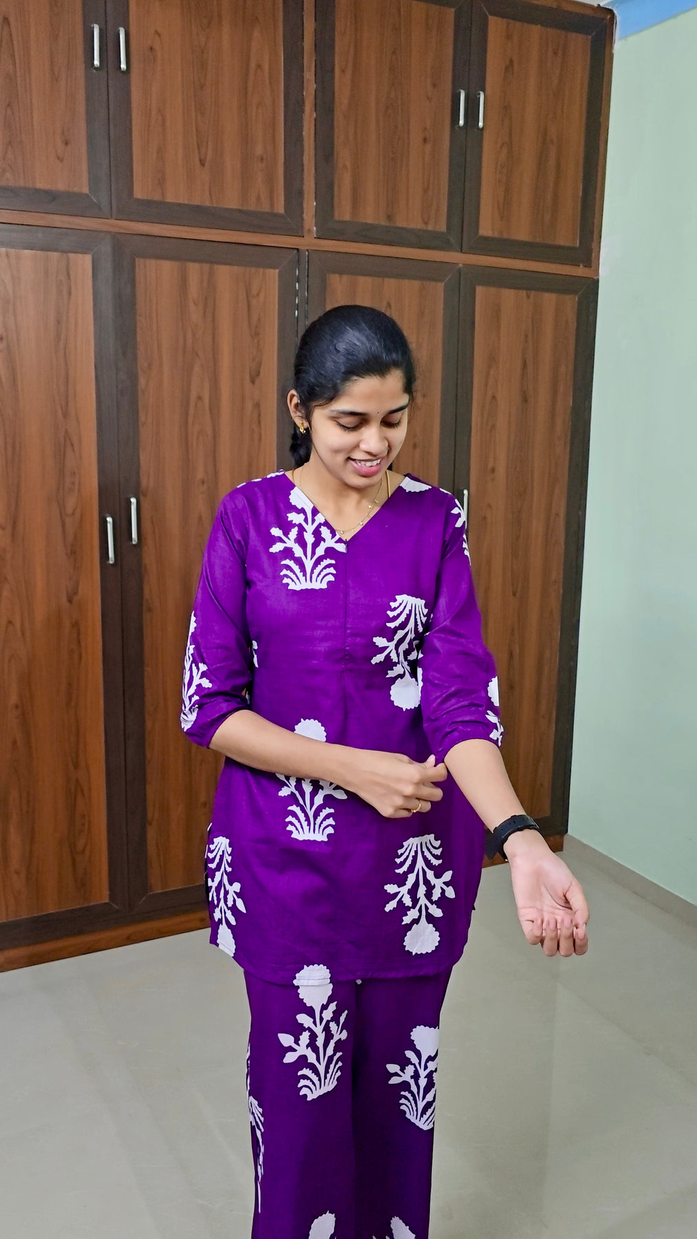 Kurta & bottom for women who love modest yet functional loungewear. The set comes with a high-neck, top featuring 3/4th sleeves and a pair of relaxed-fit palazzo pants with roomy pockets. Thoughtfully stitched with extra seams, it allows easy size adjustments in the future. Crafted in soft, breathable cotton, Haasya keeps you covered and comfortable all day long.
