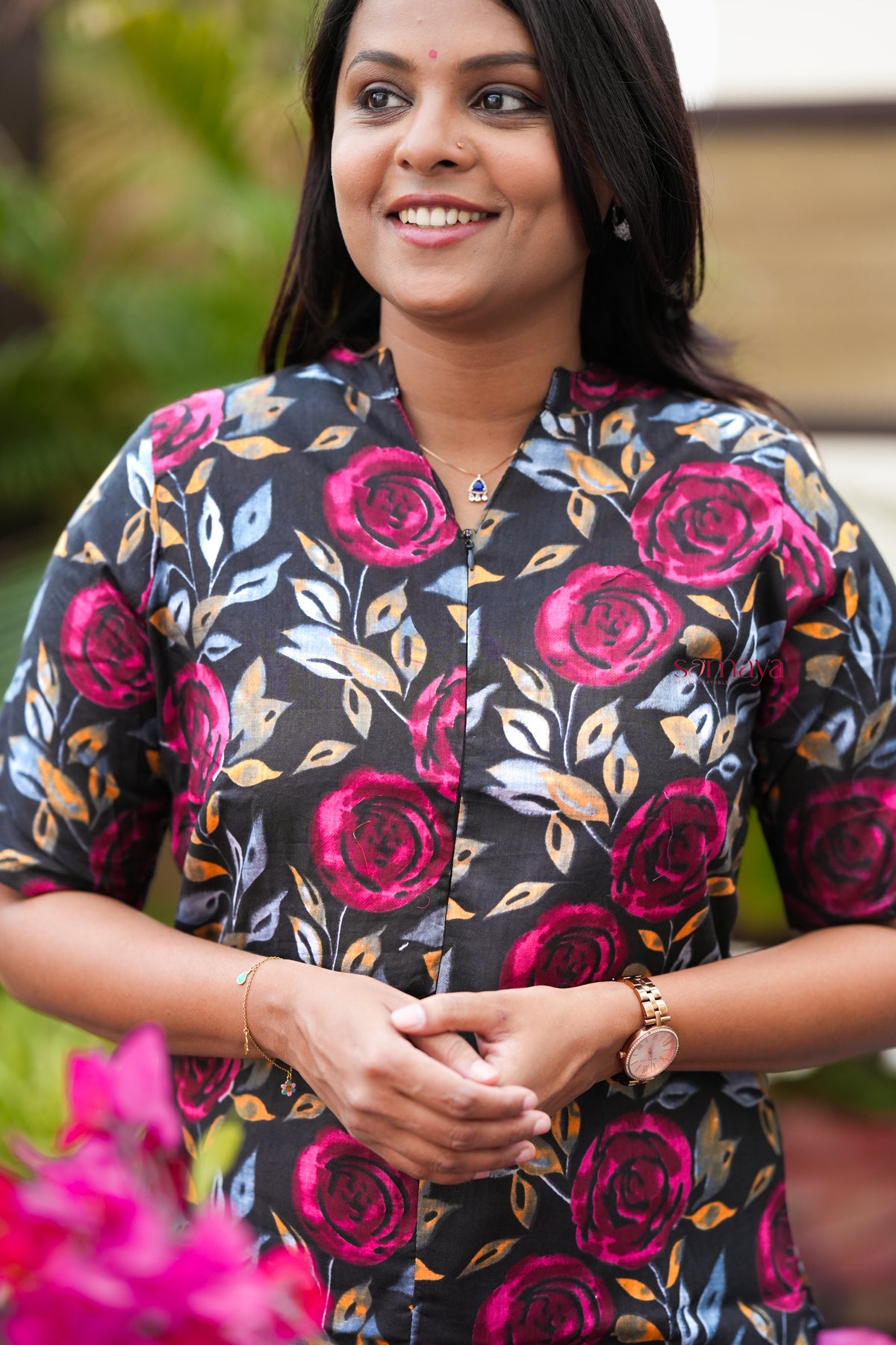 STYLE : kurta and bottom 2 piece set With zip Opening