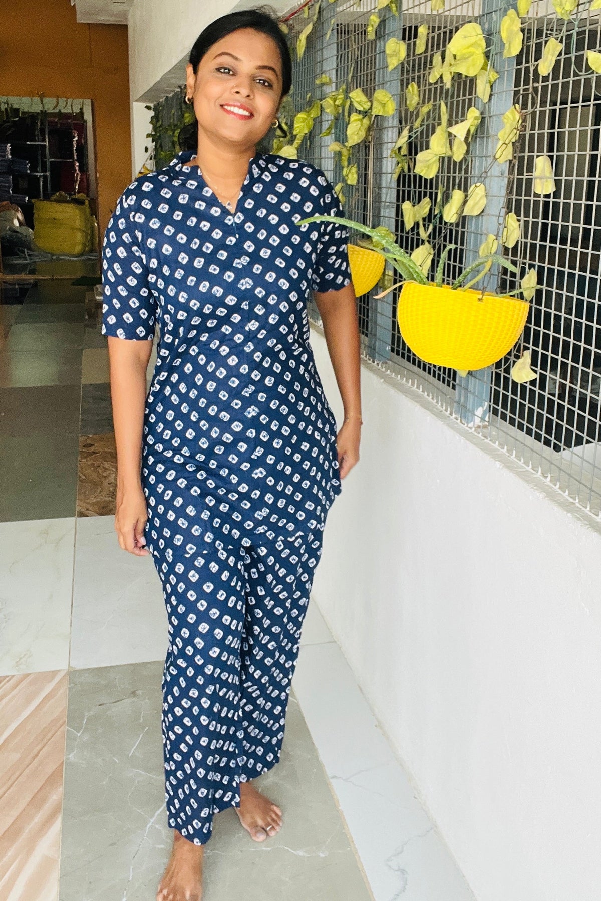 Kurta & bottom for women who love modest yet functional loungewear. The set comes with a high-neck, top featuring 3/4th sleeves and a pair of relaxed-fit palazzo pants with roomy pockets. Thoughtfully stitched with extra seams, it allows easy size adjustments in the future. Crafted in soft, breathable cotton, Haasya keeps you covered and comfortable all day long.