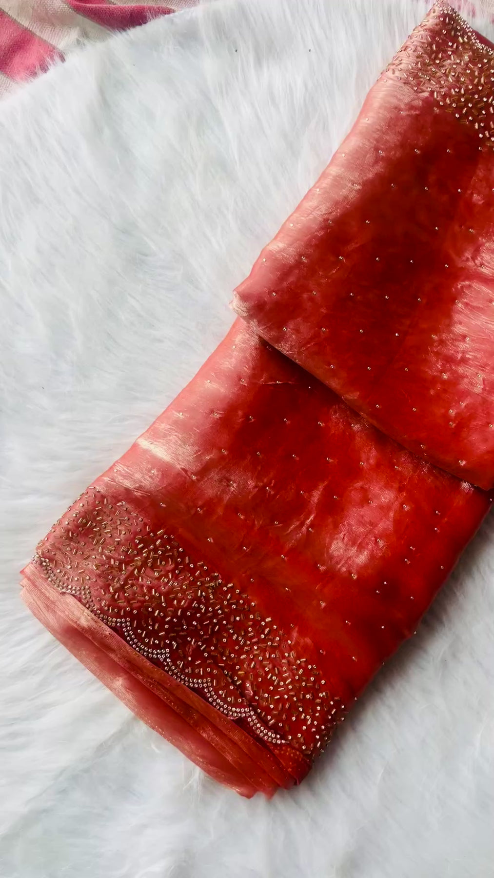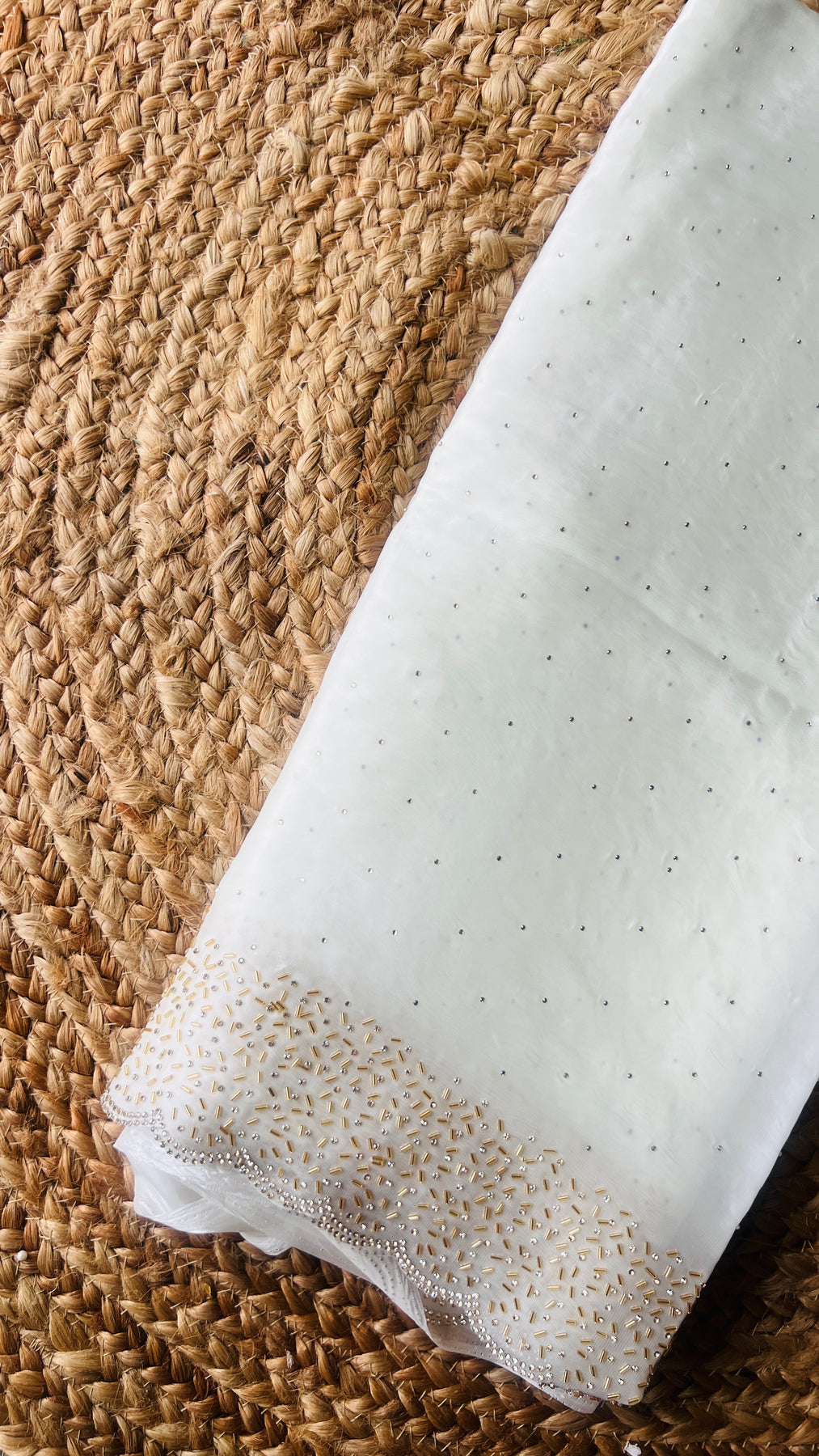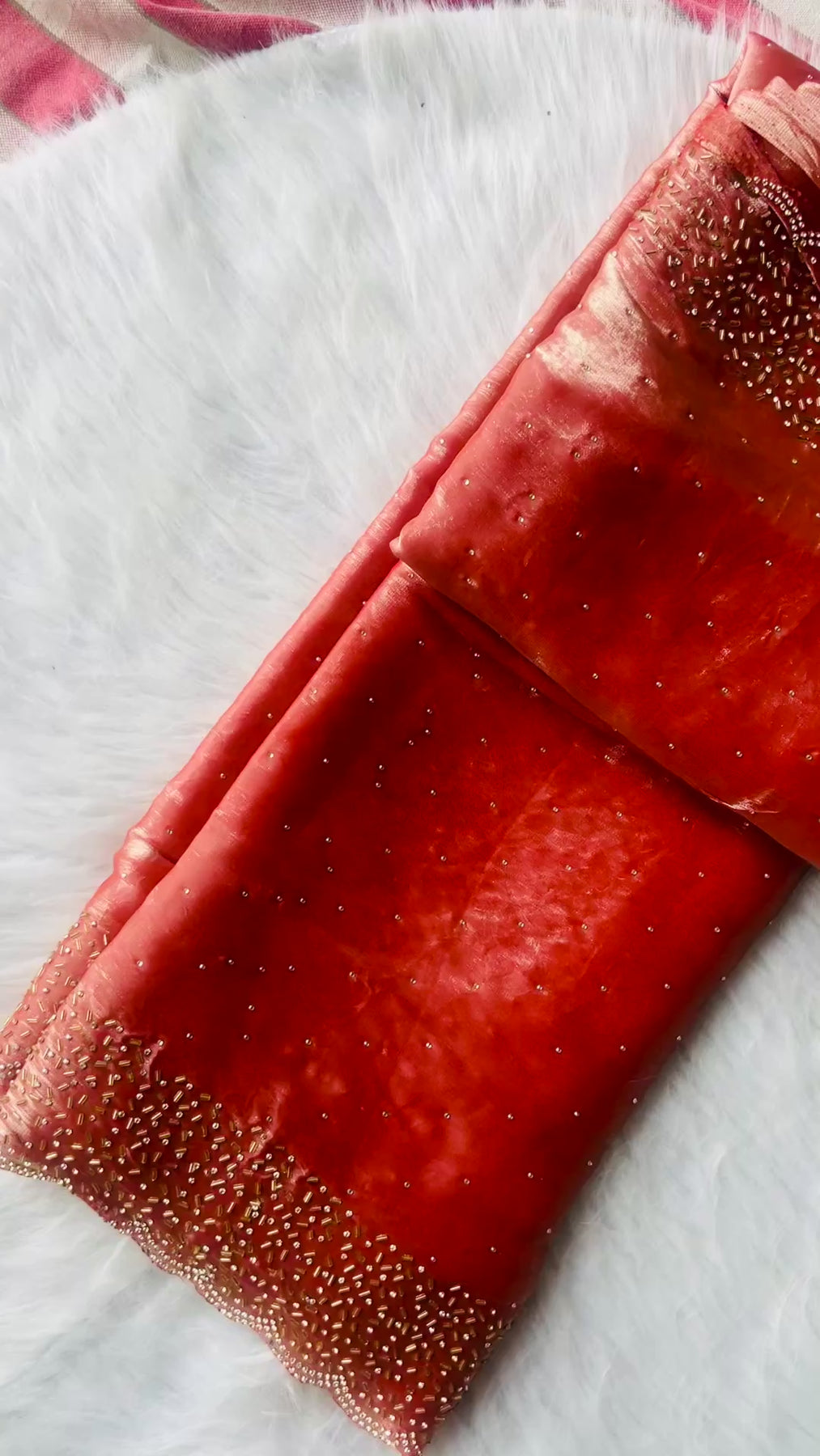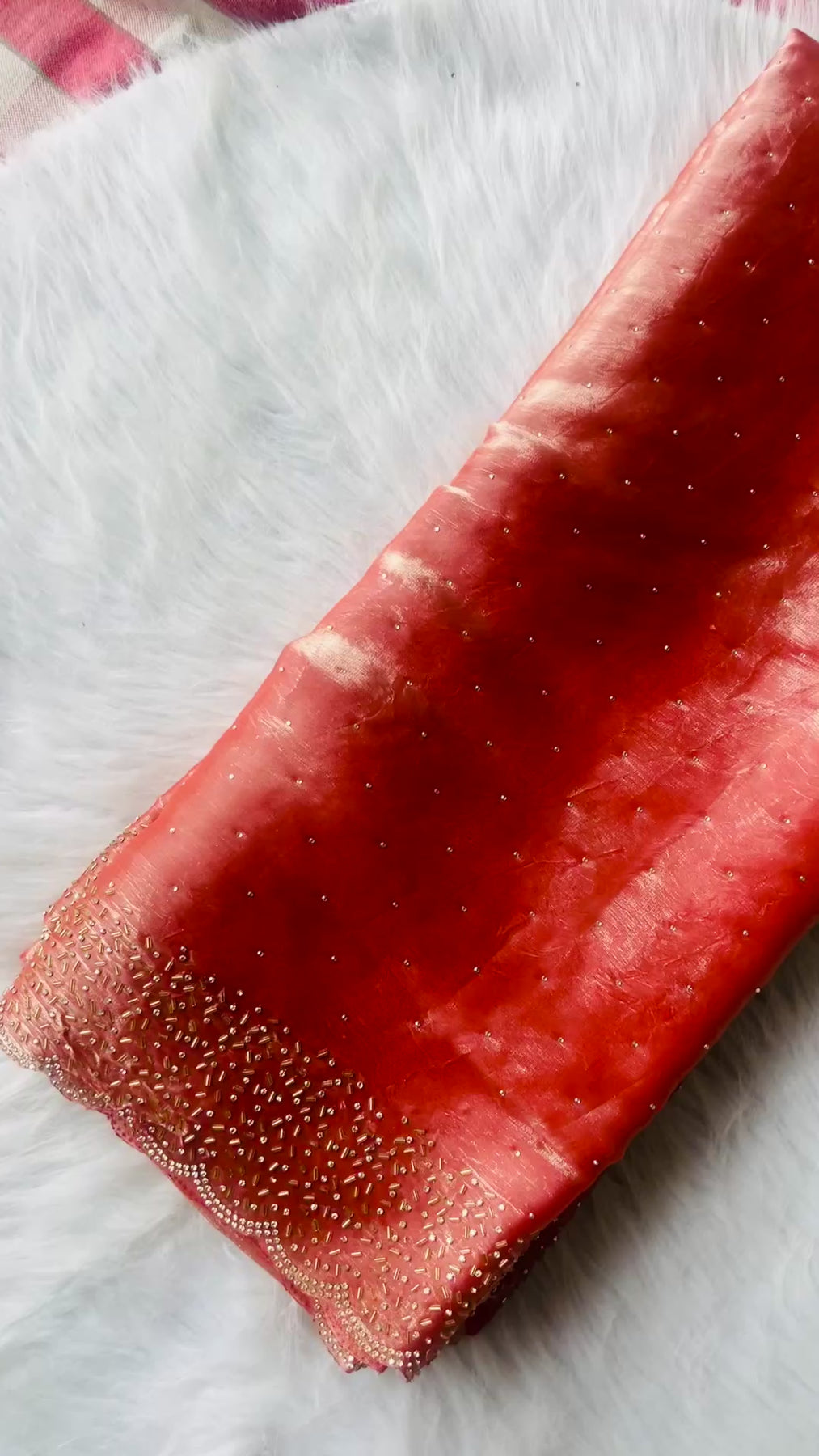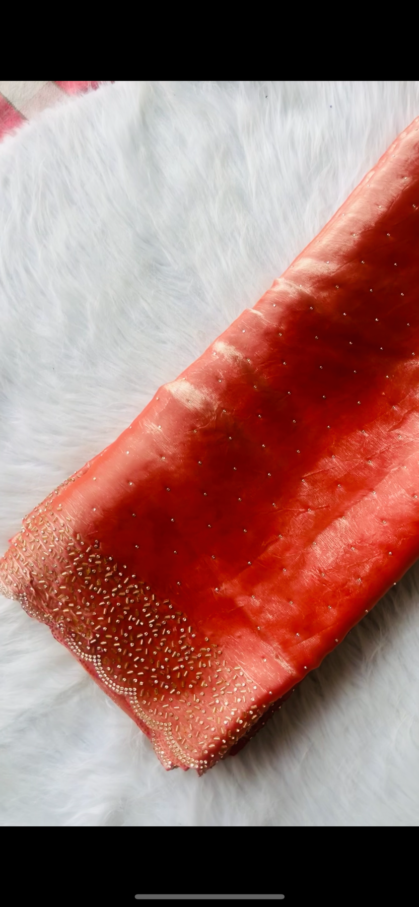 Indulge in timeless elegance with our premium soft space silk  saree, adorned with a meticulously handcrafted stone work border that exudes sophistication. The subtle yet striking addition of diamonds enhances the saree's allure, creating a luxurious ensemble that seamlessly blends traditional charm with contemporary grace. Elevate your style with this exquisite piece that captures the essence of craftsmanship and opulence.