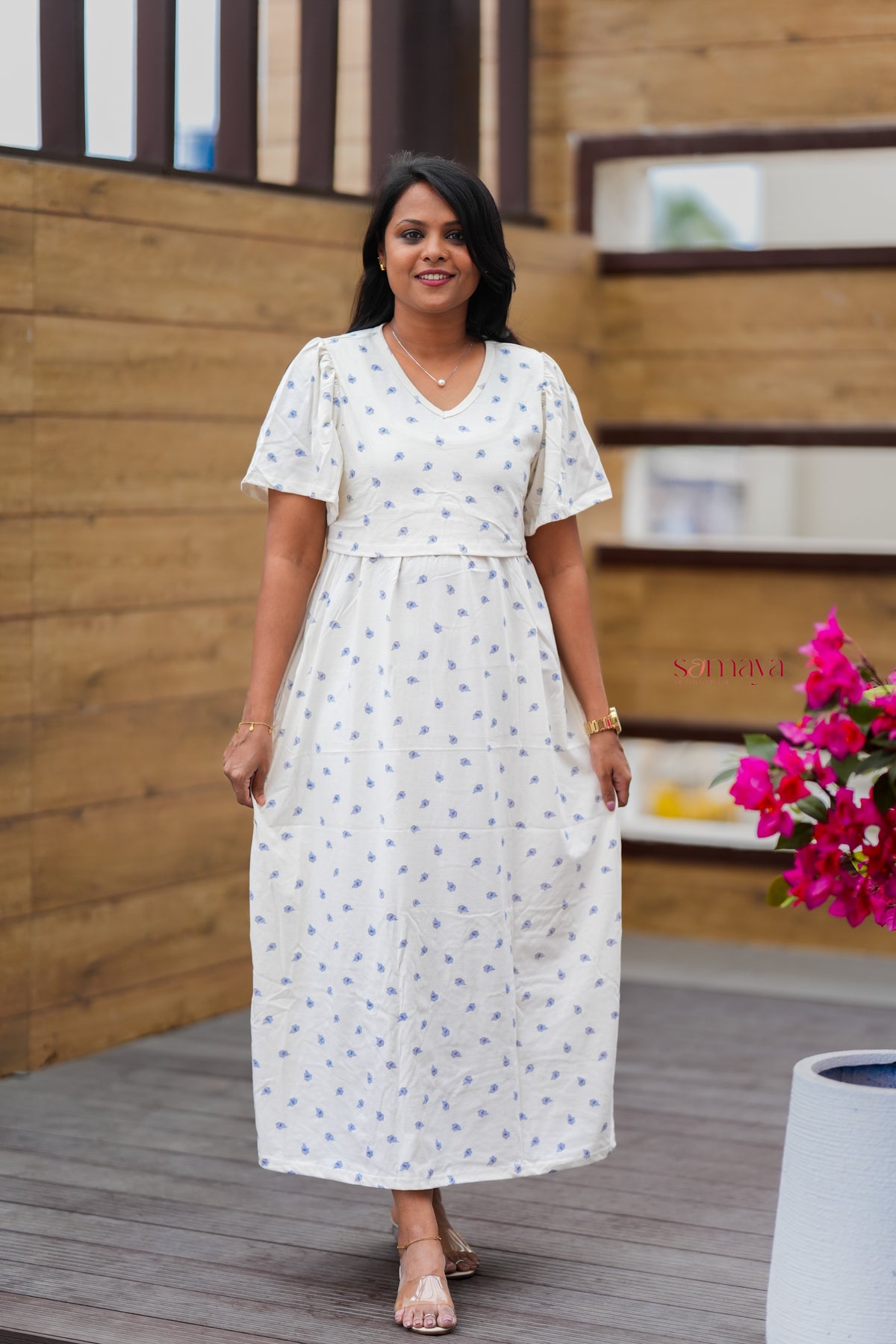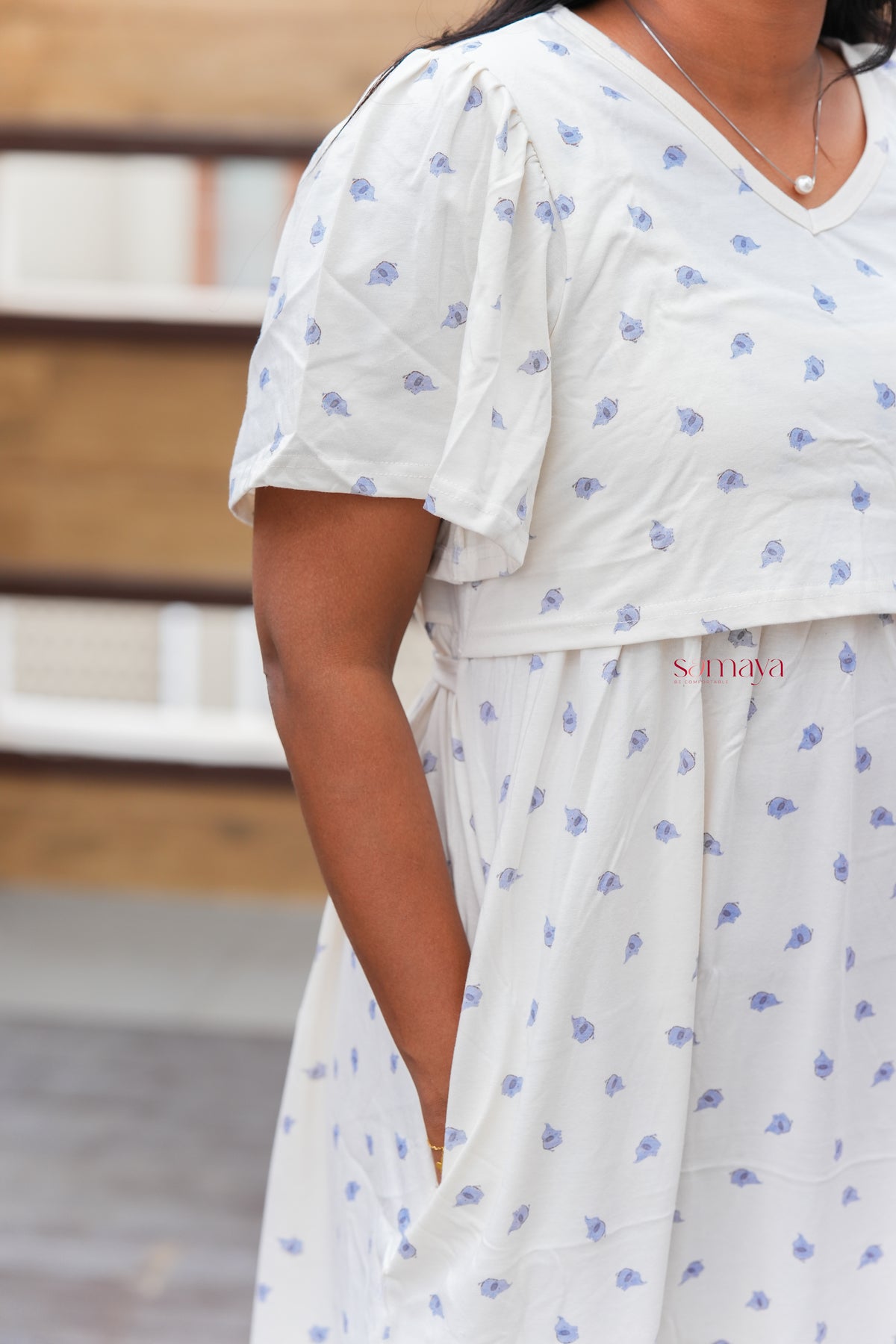 STYLE: Ankle  Length Flap  Maternity Nursing Dress      PRINT: Floral Print