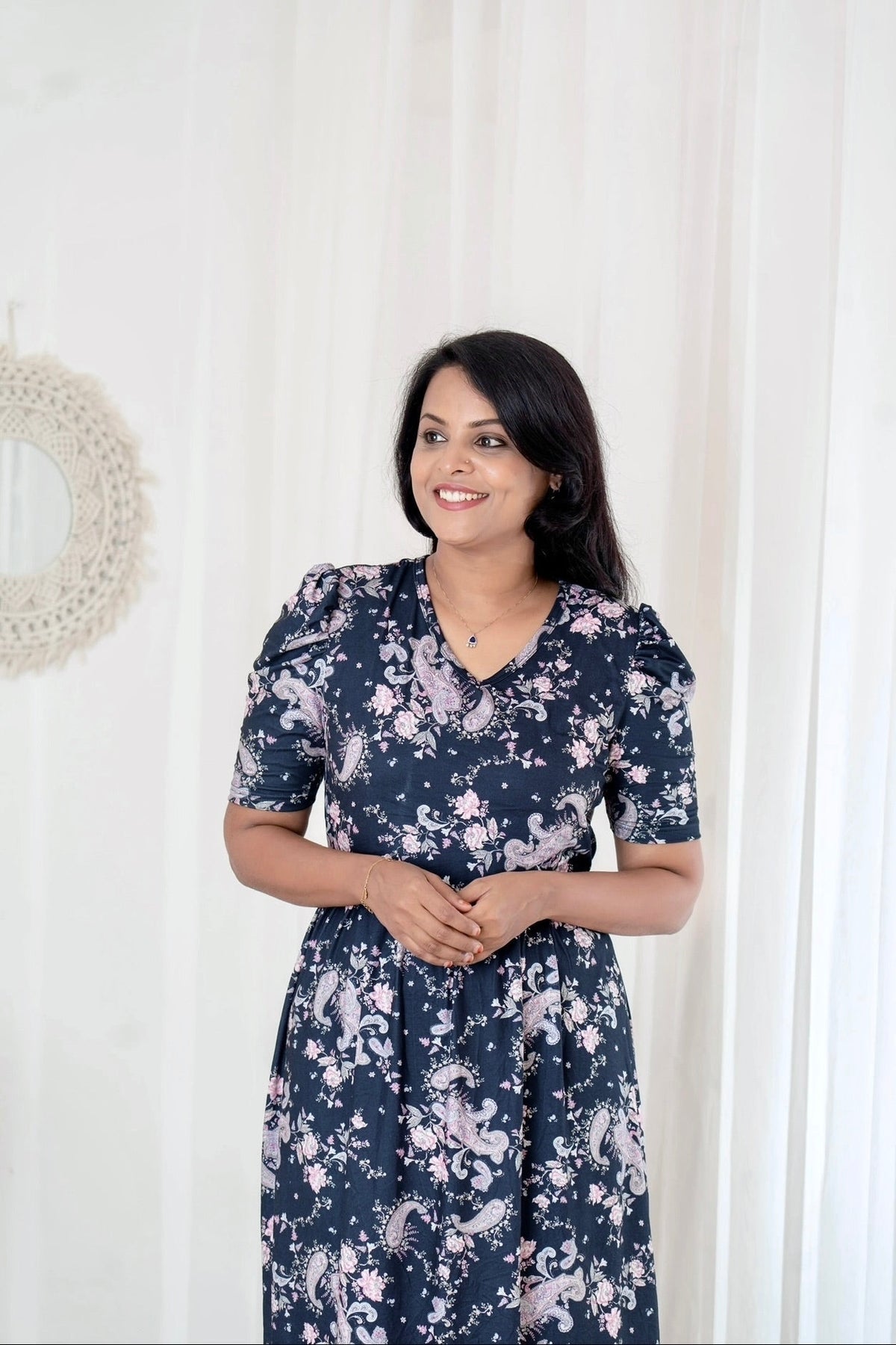 Stop getting frustrated with nursing zips and switch to samaya feeding dress with flap for ultra comfort 💝This Nursing Gown is all a mother need during the Maternity Phase.  The fabric is soft & smooth. Fabric is made up of cotton feel  Lycra. It’s very gentle on the skin. Not only that,  it’s stretchable with your growing baby bump .  Yes !! you heard it right 😃 You can easily fit in this this feeding dress before / after delivery . You can just lift up the flap and nurse your baby. So in the nights u will have  easy nursing access and very comfortable to sleep on!