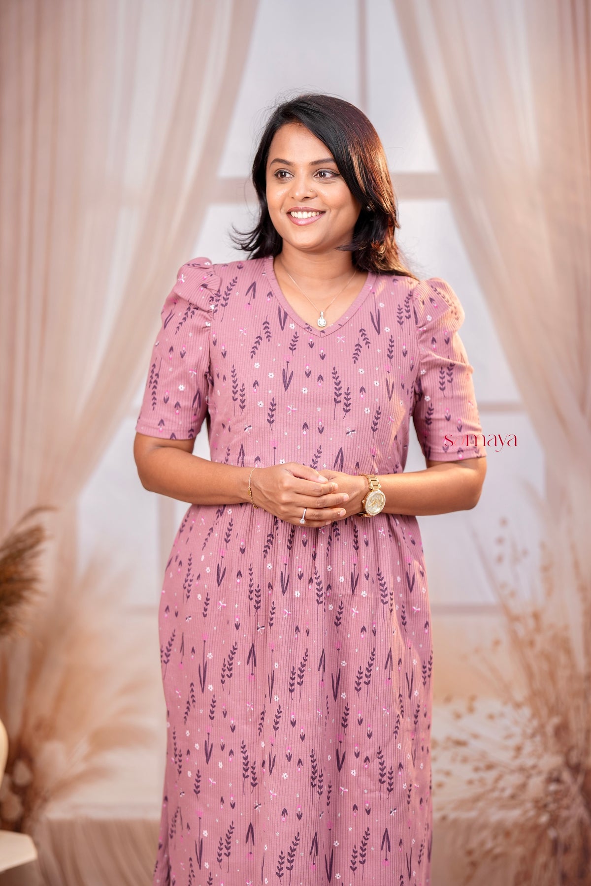 Stop getting frustrated with nursing zips and switch to samaya feeding dress with criss cross flap for ultra comfort 💝This Nursing Gown is all a mother need during the Maternity Phase. The fabric is soft & smooth . It’s very gentle on the skin. Not only that,  its stretchable with your growing baby bump .  Yes !! you heard it right 😃 You can easily fit in this this feeding dress before / after delivery . You can just lift up the flap and nurse your baby. So in the nights u will have  easy nursing access and very comfortable to sleep on!
