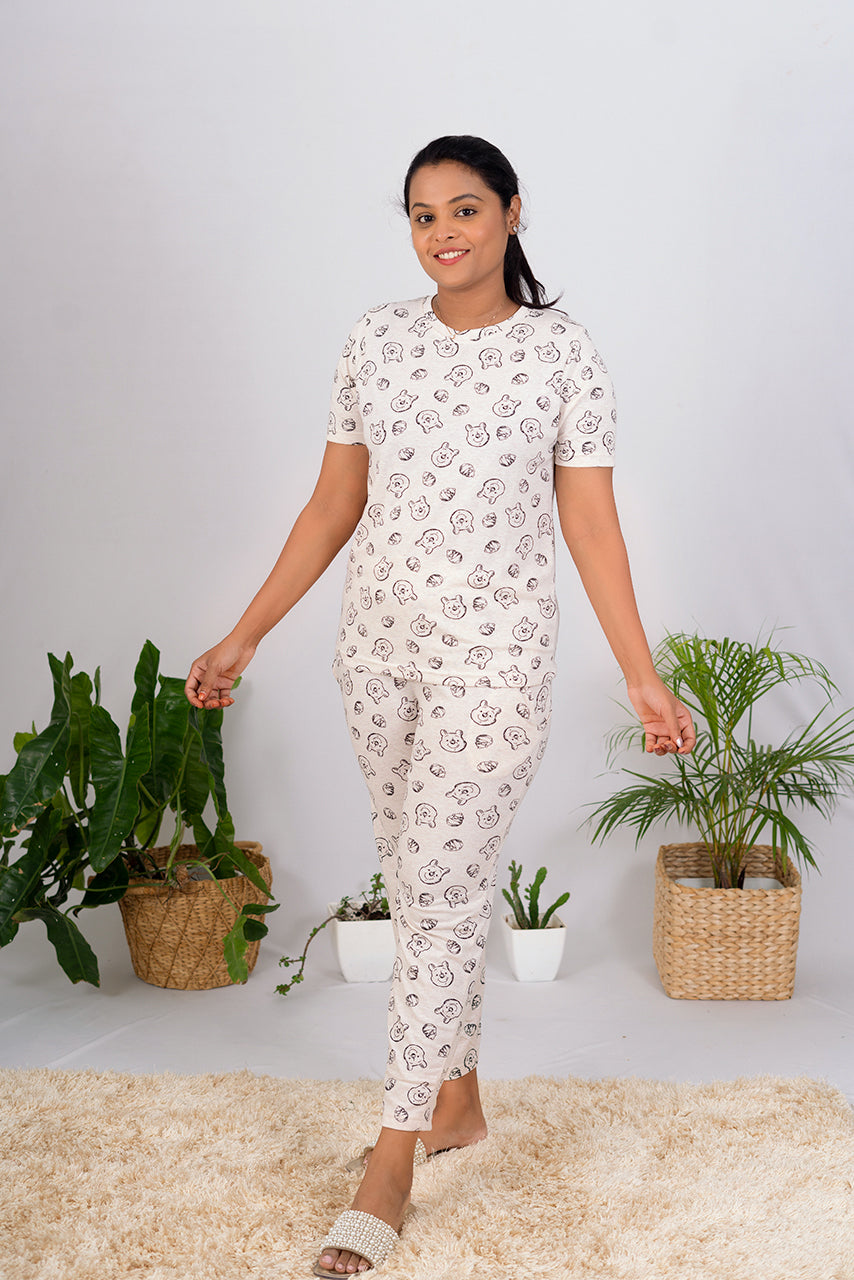 A lounge wear that's perfect for a cozy day in, Netflix & chill and sleep over at your friends place. The fine quality of fabric is super comfortable for a good night sleep !our cute prints will add a smile on your face, It is made of cotton fabric which makes it super comfortable and soft on skin.The relaxed fit makes it breathable ,sleepable😜( word that we found )